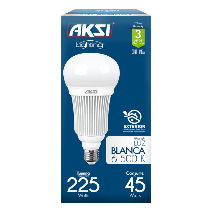 El Foco LED Aksi 150W Alta Potencia con Base E39 y luz blanca es una solución ideal para iluminación exterior de alto rendimiento. Con un consumo de 150W, ofrece una potencia equivalente a 850W, pr...