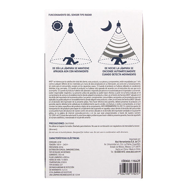 Foco LED Aksi 40W Alta Potencia c/Sensor de Luz y Movimiento