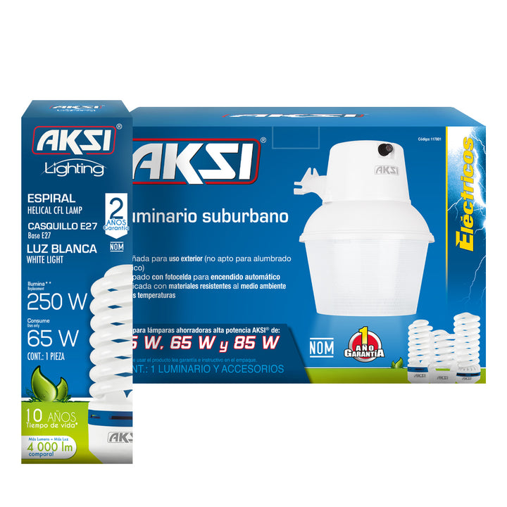 Luminario Aksi 65W Suburbano IP65 c/Foco Ahorrador Luz Fría