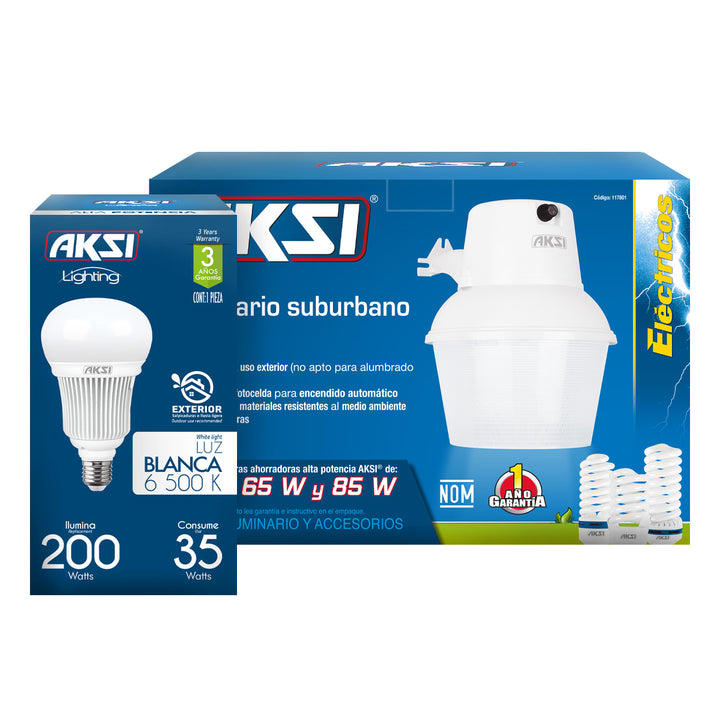 Luminario Aksi 35W Suburbano IP65 con Foco LED Luz Blanca